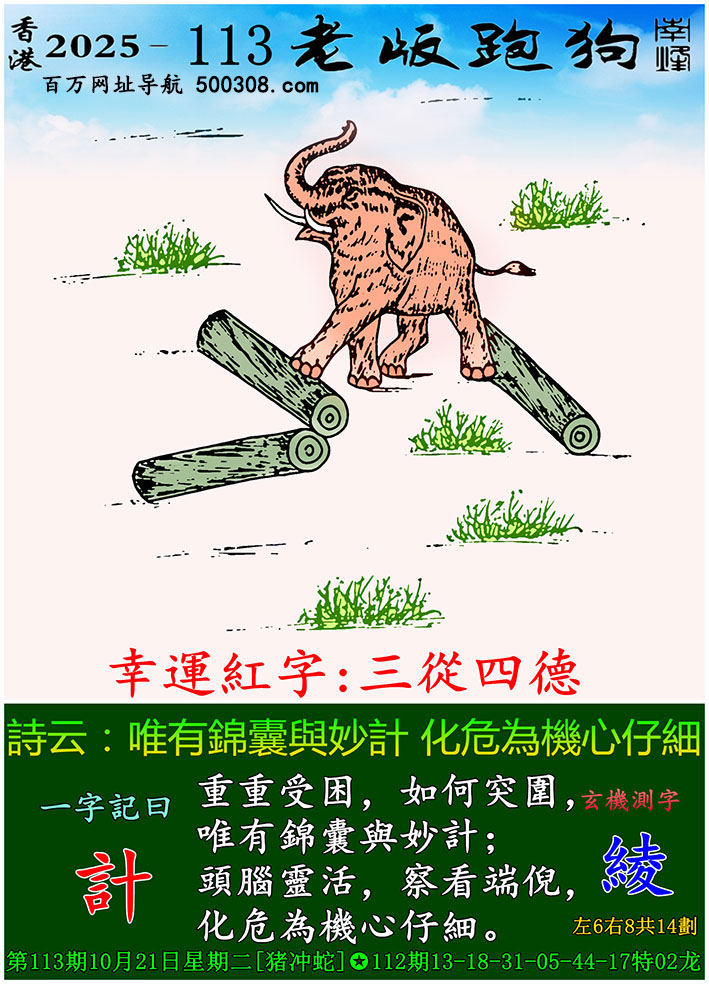 115期跑狗图:一字記之曰: 【旗】 旗映殘陽,血染征裳。 不破樓蘭,誓不還鄉。玄機測字:《權》 一語中特:九死一生