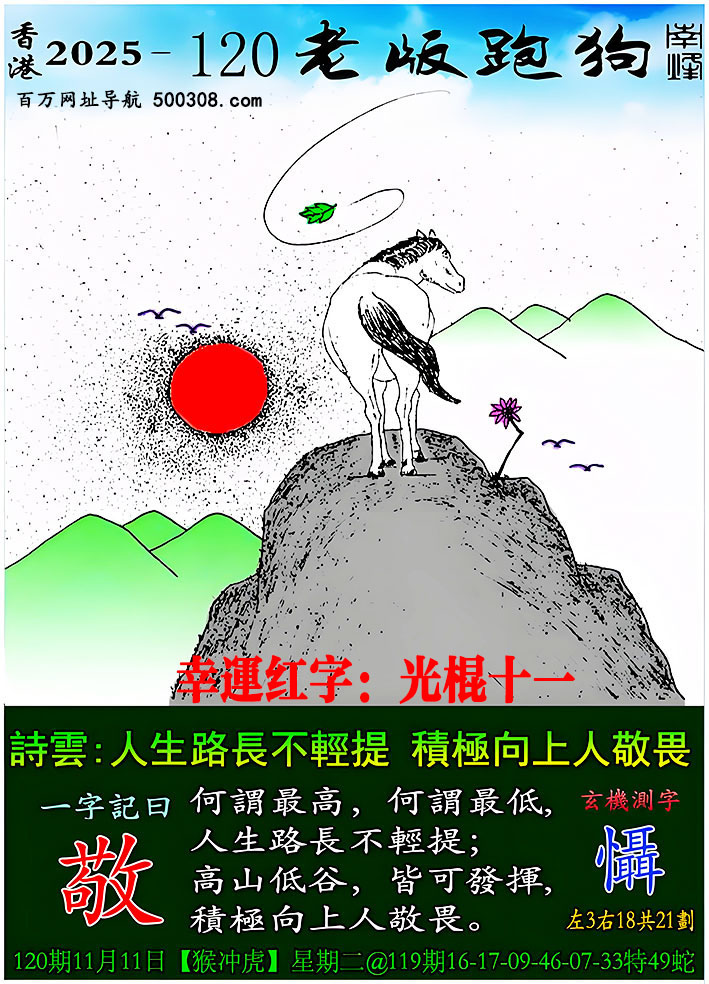 130期跑狗图:一字記之曰:【登】 登上高崖,狐身獨立。 知秋壹葉,影落雲清。玄機測字:《歐》 一語中特:三言兩語