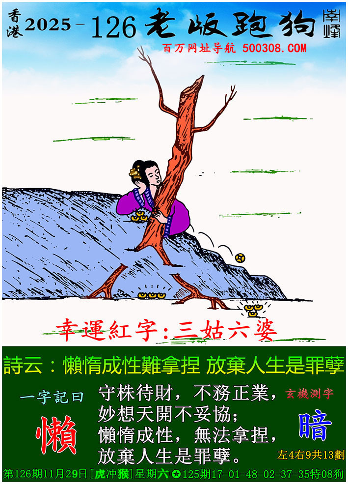 红字解释:老解寿命最长的龙;淚带"氵"解水肖鼠猪,带"犬"解狗;横带"木"解木肖虎兔。【释义】老年人痛哭时淌下的泪水在脸上竖一条横一条。形容老人极度伤心、泪流满面的样子。