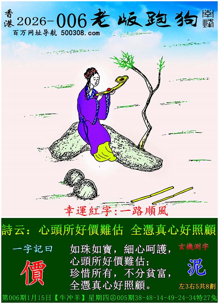 015期跑狗图:一字記之曰:【等】 黛眉凝睇,河畔孤棲。 風牽雲影,靜等歸期。玄機測字:《欺》 一語中特:七上八落